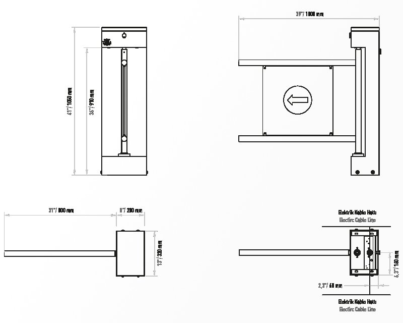 7. Fonksiyon Testi: Gücü açın. Uzaktan kumanda veya buton ile turnike kanadının açılıp kapandığını test edin. Kanadın tam olarak açılıp kapandığından ve herhangi bir takılma yapmadığından emin olun.